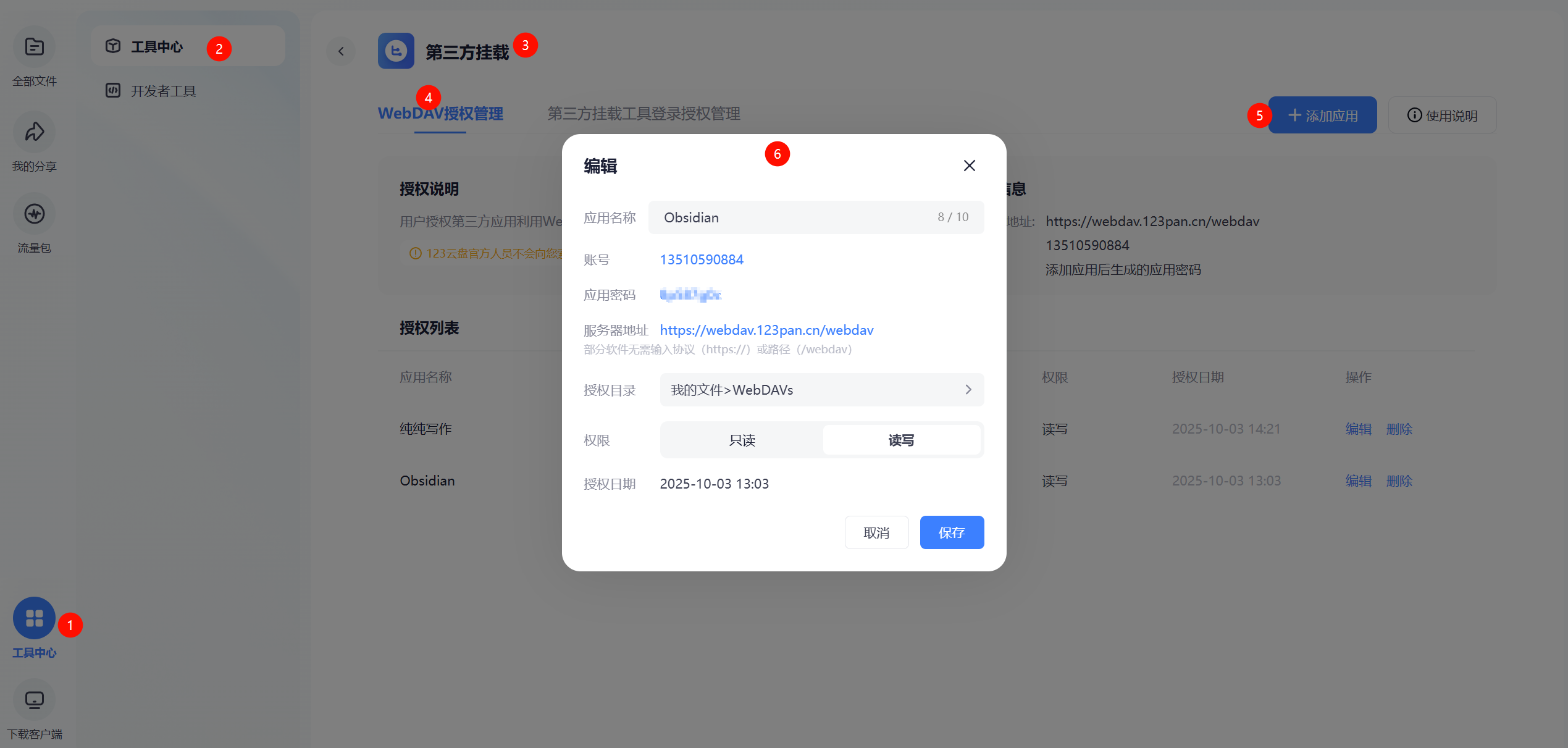 以 Obsidian 中配置 123云盘 的 webdav 为例